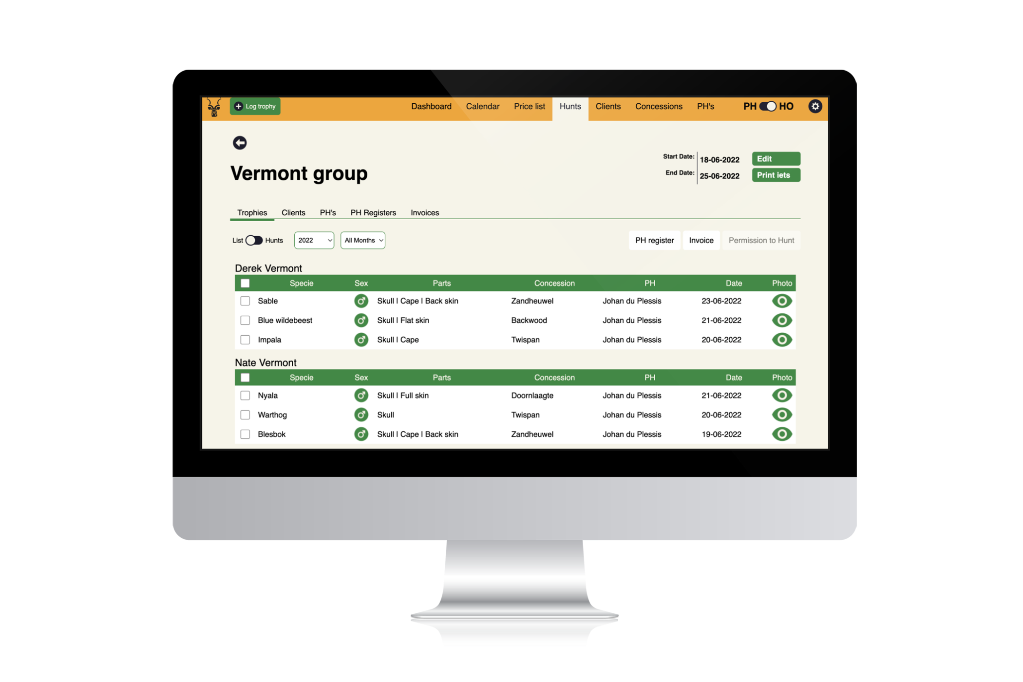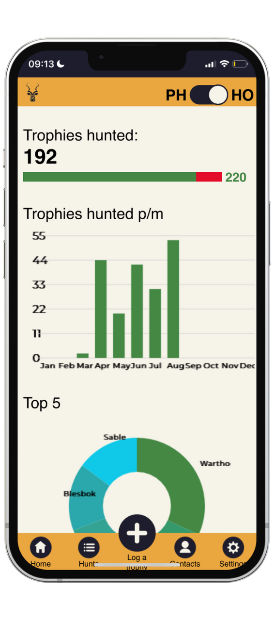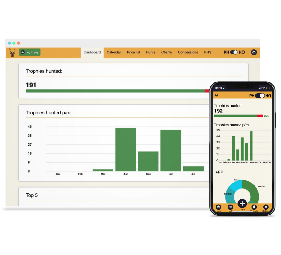 When your Professional hunters start to log trophies, you will receive constant feedback with beautiful reports and all the tools you need to manage your business professionally.