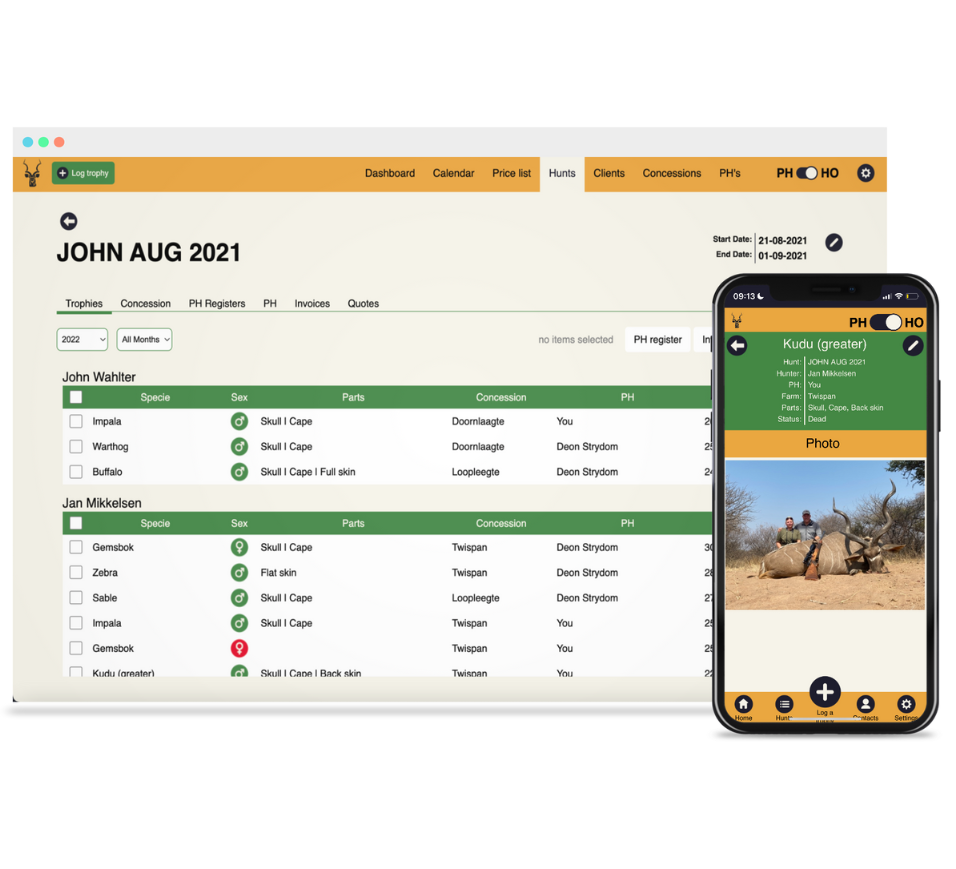 Professional hunters use there phones to log trophies for FREE
