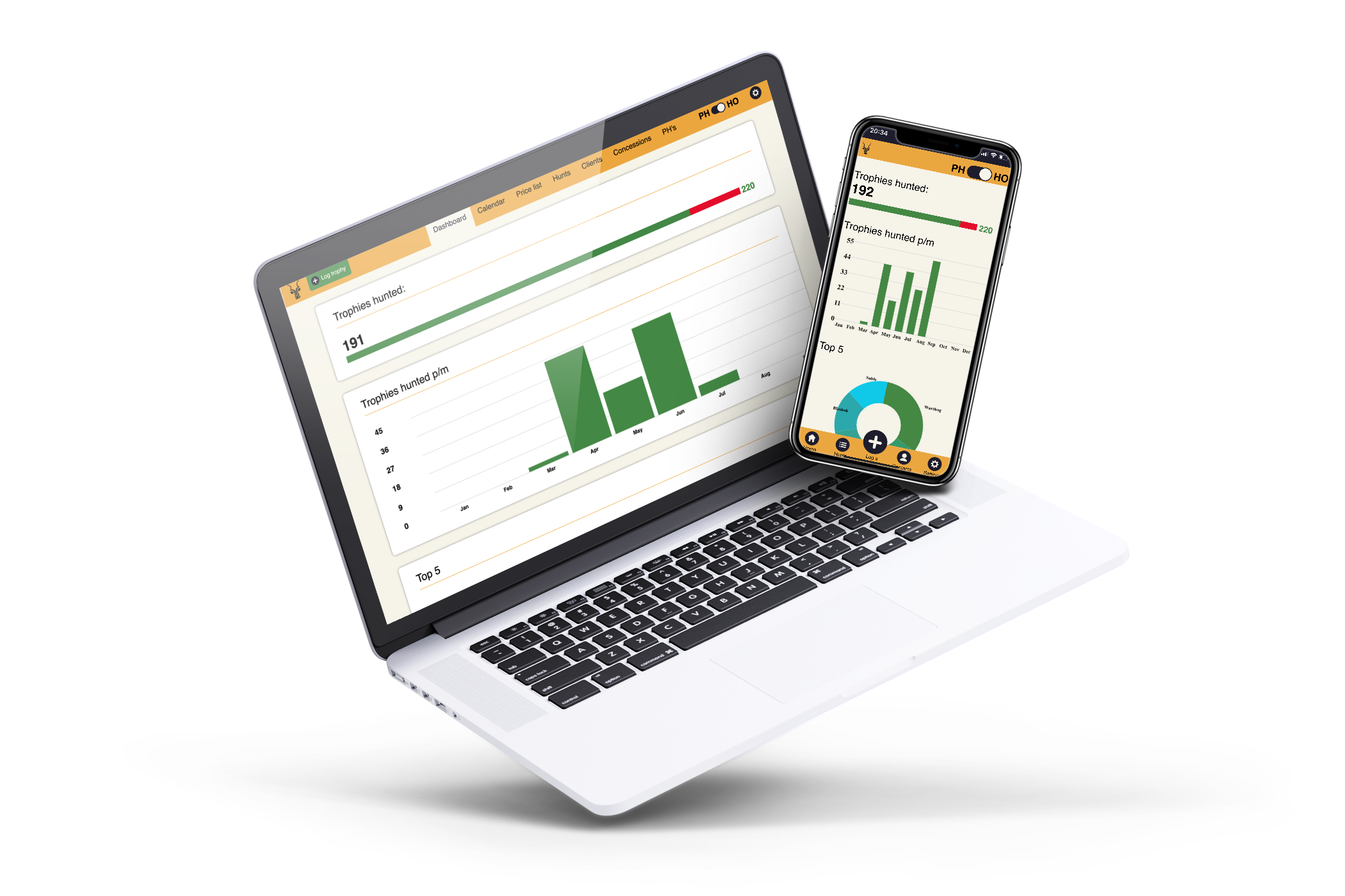 When your Professional hunters start to log trophies, you will receive constant feedback with beautiful reports and all the tools you need to manage your business professionally.